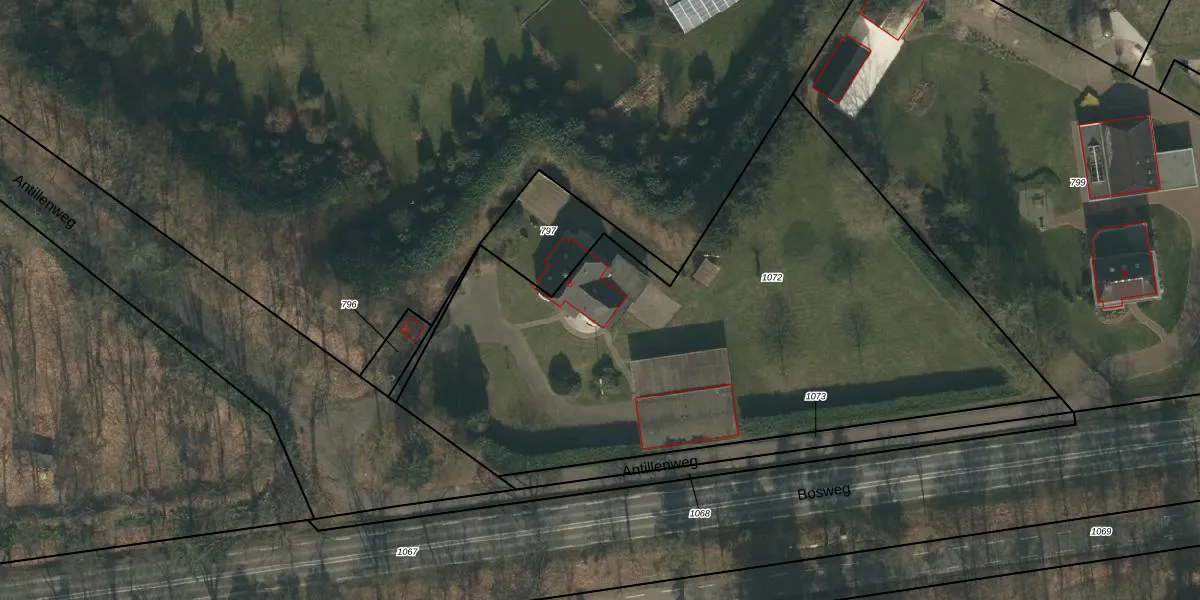 Het perceel waarop Bosweg 25 staat heeft een oppervlakte van 3372 m². Dit is een zeer groot perceel. De perceeloppervlakte wordt geregistreerd door het Kadaster. Gedetailleerde informatie over de maten van dit perceel kunt u vinden in het rapport Kadastrale kaart met maatvoering van Bosweg 25.