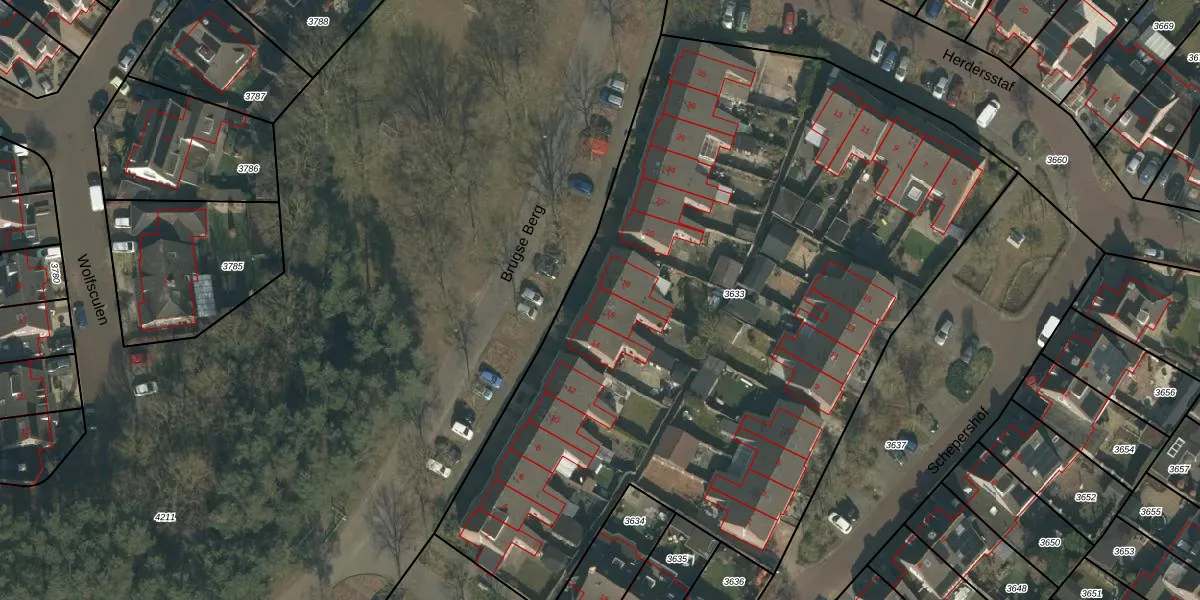 Het perceel waarop Brugse Berg 16 staat heeft een oppervlakte van 4758 m². Dit is een zeer groot perceel. De perceeloppervlakte wordt geregistreerd door het Kadaster. Gedetailleerde informatie over de maten van dit perceel kunt u vinden in het rapport Kadastrale kaart met maatvoering van Brugse Berg 16.