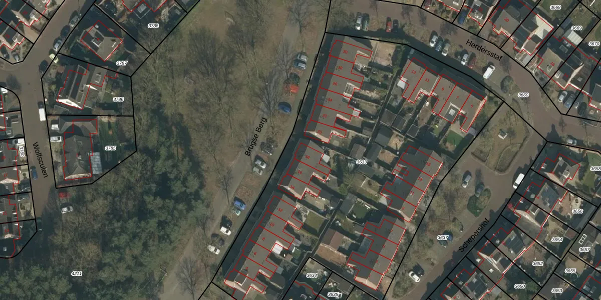 Het perceel waarop Brugse Berg 18 staat heeft een oppervlakte van 4758 m². Dit is een zeer groot perceel. De perceeloppervlakte wordt geregistreerd door het Kadaster. Gedetailleerde informatie over de maten van dit perceel kunt u vinden in het rapport Kadastrale kaart met maatvoering van Brugse Berg 18.