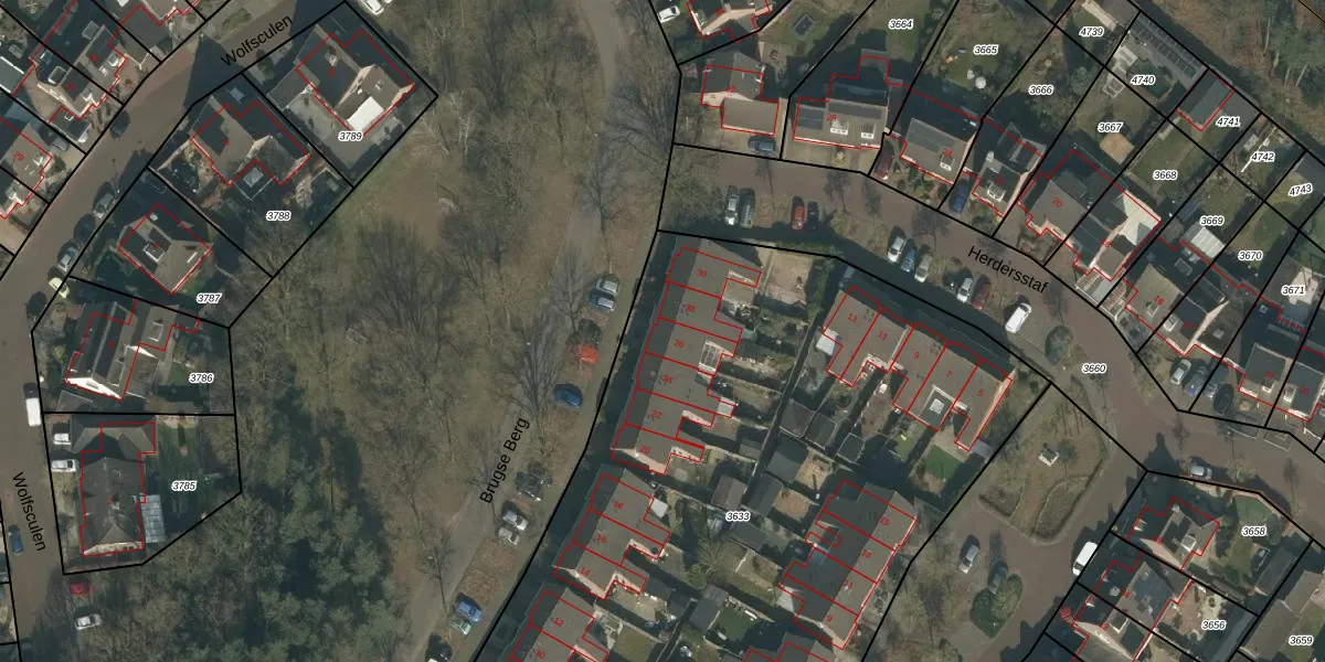 Het perceel waarop Brugse Berg 26 staat heeft een oppervlakte van 4758 m². Dit is een zeer groot perceel. De perceeloppervlakte wordt geregistreerd door het Kadaster. Gedetailleerde informatie over de maten van dit perceel kunt u vinden in het rapport Kadastrale kaart met maatvoering van Brugse Berg 26.