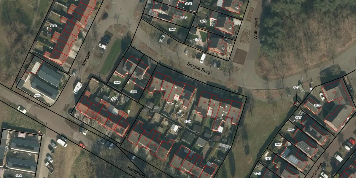 Het perceel waarop Brugse Berg 27 staat heeft een oppervlakte van 3054 m². Dit is een zeer groot perceel. De perceeloppervlakte wordt geregistreerd door het Kadaster. Gedetailleerde informatie over de maten van dit perceel kunt u vinden in het rapport Kadastrale kaart met maatvoering van Brugse Berg 27.