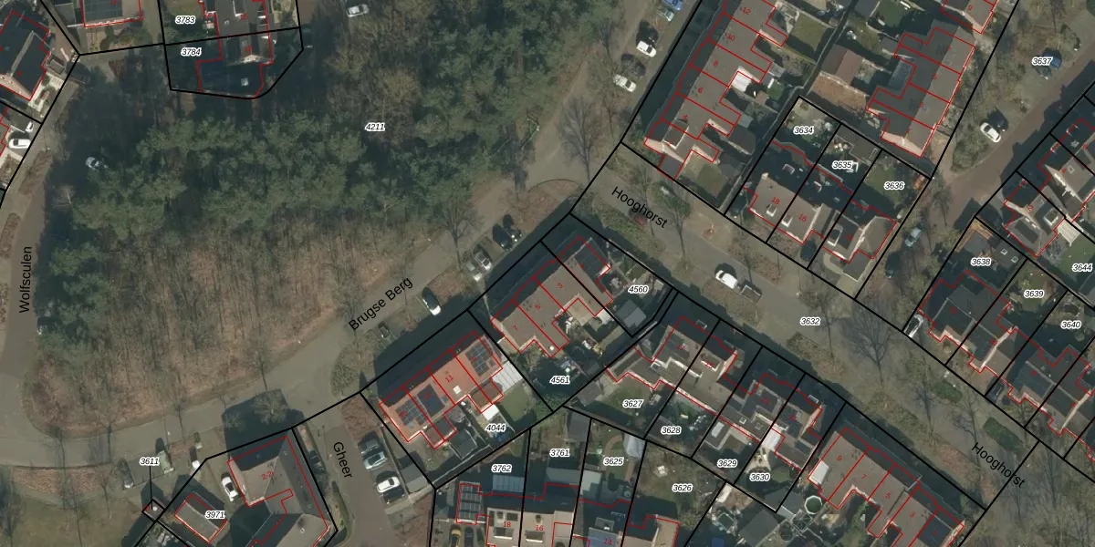 Het perceel waarop Brugse Berg 3 staat heeft een oppervlakte van 496 m². Dit is een groot perceel. De perceeloppervlakte wordt geregistreerd door het Kadaster. Gedetailleerde informatie over de maten van dit perceel kunt u vinden in het rapport Kadastrale kaart met maatvoering van Brugse Berg 3.