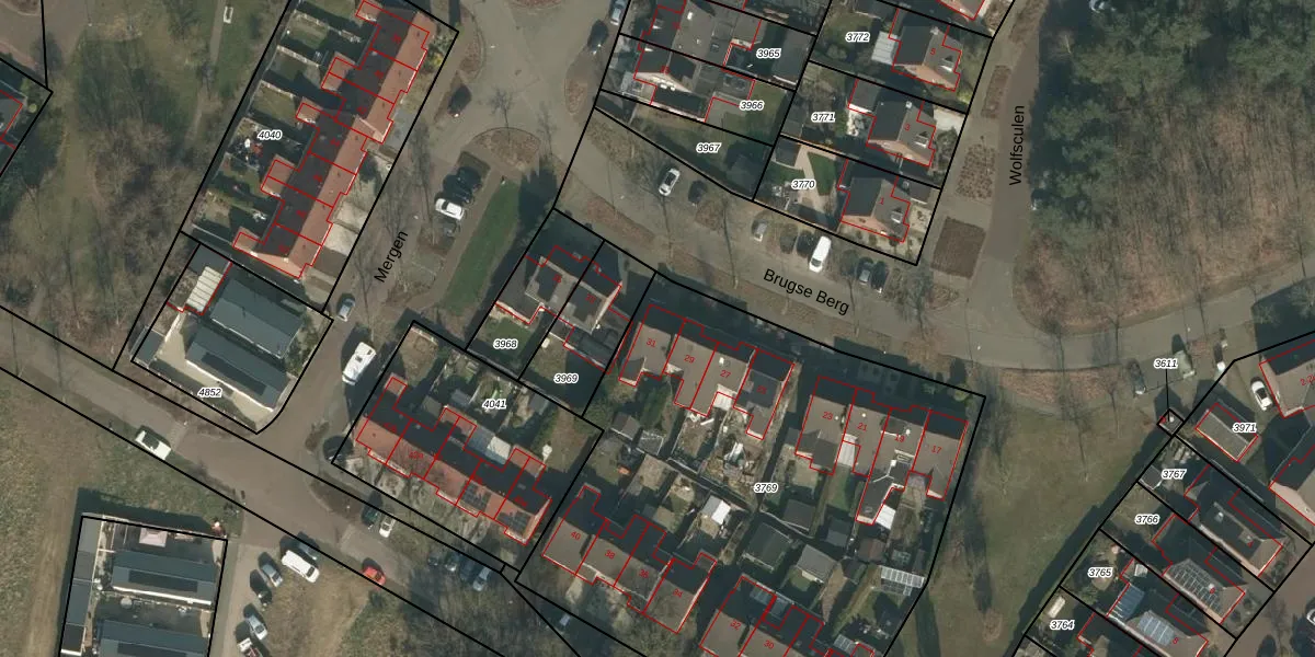 Het perceel waarop Brugse Berg 31 staat heeft een oppervlakte van 3054 m². Dit is een zeer groot perceel. De perceeloppervlakte wordt geregistreerd door het Kadaster. Gedetailleerde informatie over de maten van dit perceel kunt u vinden in het rapport Kadastrale kaart met maatvoering van Brugse Berg 31.