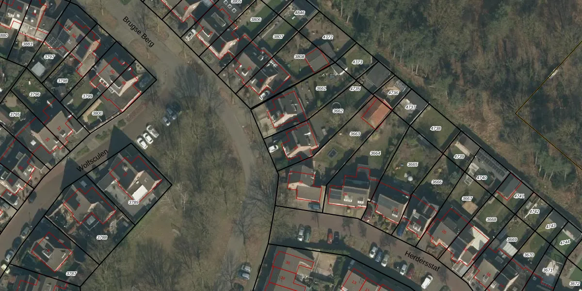 Het perceel waarop Brugse Berg 34 staat heeft een oppervlakte van 415 m². Dit is een groot perceel. De perceeloppervlakte wordt geregistreerd door het Kadaster. Gedetailleerde informatie over de maten van dit perceel kunt u vinden in het rapport Kadastrale kaart met maatvoering van Brugse Berg 34.