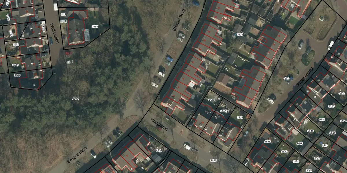 Het perceel waarop Brugse Berg 6 staat heeft een oppervlakte van 4758 m². Dit is een zeer groot perceel. De perceeloppervlakte wordt geregistreerd door het Kadaster. Gedetailleerde informatie over de maten van dit perceel kunt u vinden in het rapport Kadastrale kaart met maatvoering van Brugse Berg 6.