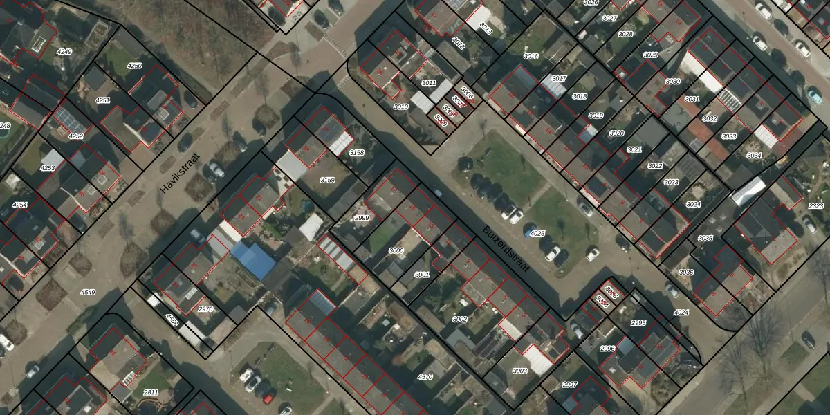 Buizerdstraat 15 is gelegen op kadastraal perceel MIL00F3000. Deze kadastrale aanduiding is uniek en wordt gebruikt door het Kadaster om eigendomsrechten en andere zakelijke rechten vast te leggen. Het perceel maakt onderdeel uit van de kadastrale gemeente Mill.
