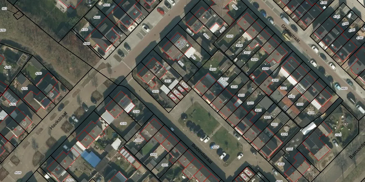 Gebruik de zoekbalk of klik op een perceel voor informatie over de adressen binnen dit perceel.