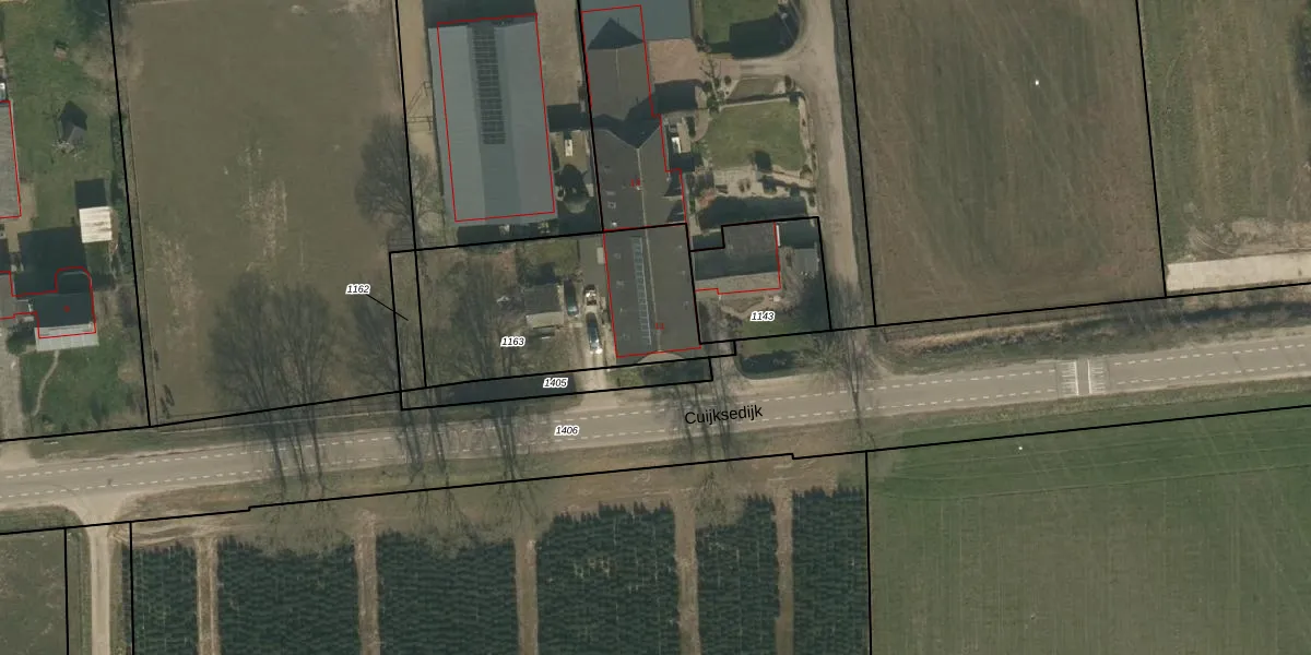 Cuijksedijk 11 is gelegen op kadastraal perceel MIL00R1163. Deze kadastrale aanduiding is uniek en wordt gebruikt door het Kadaster om eigendomsrechten en andere zakelijke rechten vast te leggen. Het perceel maakt onderdeel uit van de kadastrale gemeente Mill.