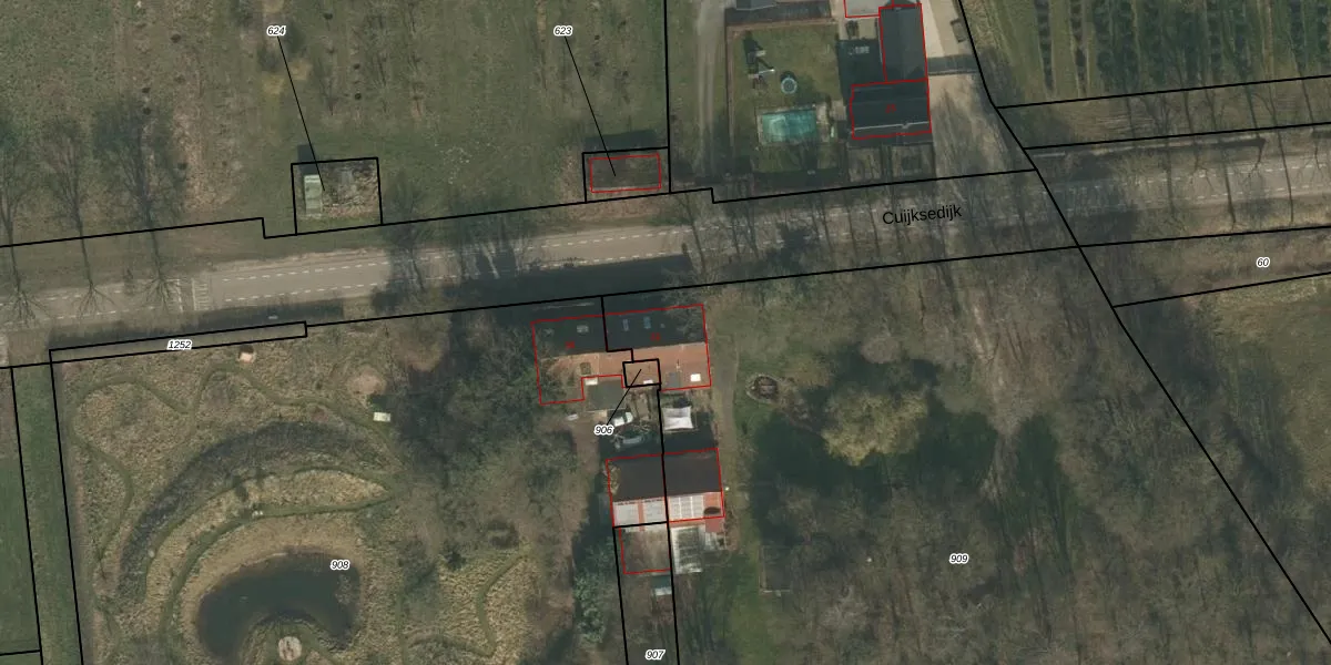 Het perceel waarop Cuijksedijk 32 staat heeft een oppervlakte van 5915 m². Dit is een zeer groot perceel. De perceeloppervlakte wordt geregistreerd door het Kadaster. Gedetailleerde informatie over de maten van dit perceel kunt u vinden in het rapport Kadastrale kaart met maatvoering van Cuijksedijk 32.