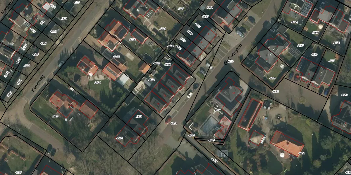 Het perceel waarop De Doorgang 16 staat heeft een oppervlakte van 670 m². Dit is een groot perceel. De perceeloppervlakte wordt geregistreerd door het Kadaster. Gedetailleerde informatie over de maten van dit perceel kunt u vinden in het rapport Kadastrale kaart met maatvoering van De Doorgang 16.