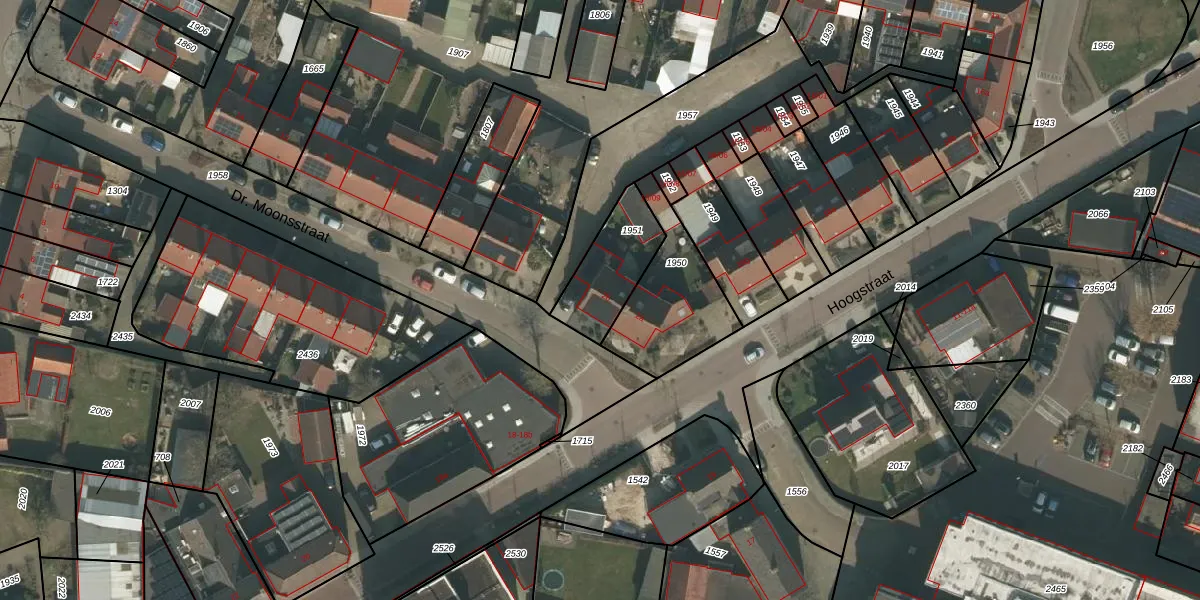Dr. Moonsstraat 2-b is gelegen op kadastraal perceel MIL00G1951. Deze kadastrale aanduiding is uniek en wordt gebruikt door het Kadaster om eigendomsrechten en andere zakelijke rechten vast te leggen. Het perceel maakt onderdeel uit van de kadastrale gemeente Mill.