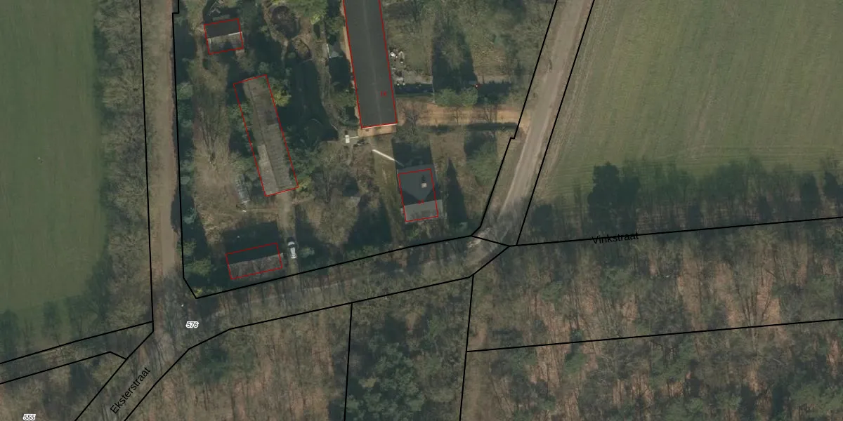 Het perceel waarop Eksterstraat 14 staat heeft een oppervlakte van 8035 m². Dit is een zeer groot perceel. De perceeloppervlakte wordt geregistreerd door het Kadaster. Gedetailleerde informatie over de maten van dit perceel kunt u vinden in het rapport Kadastrale kaart met maatvoering van Eksterstraat 14.