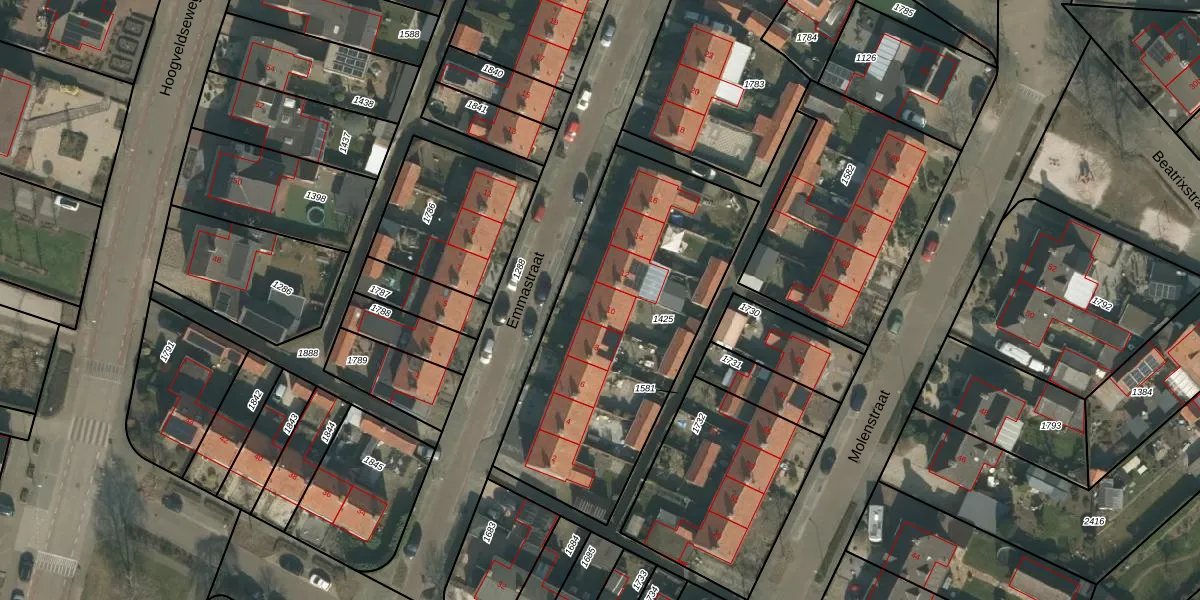 Emmastraat 10 is gelegen op kadastraal perceel MIL00G1425. Deze kadastrale aanduiding is uniek en wordt gebruikt door het Kadaster om eigendomsrechten en andere zakelijke rechten vast te leggen. Het perceel maakt onderdeel uit van de kadastrale gemeente Mill.