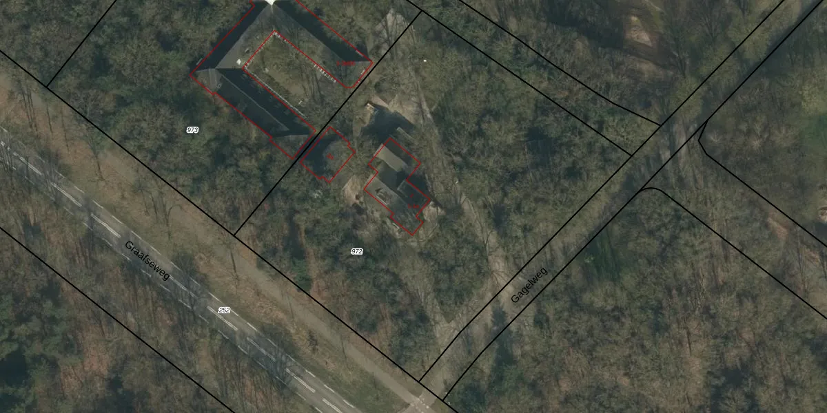 Het perceel waarop Gagelweg 1 staat heeft een oppervlakte van 4290 m². Dit is een zeer groot perceel. De perceeloppervlakte wordt geregistreerd door het Kadaster. Gedetailleerde informatie over de maten van dit perceel kunt u vinden in het rapport Kadastrale kaart met maatvoering van Gagelweg 1.