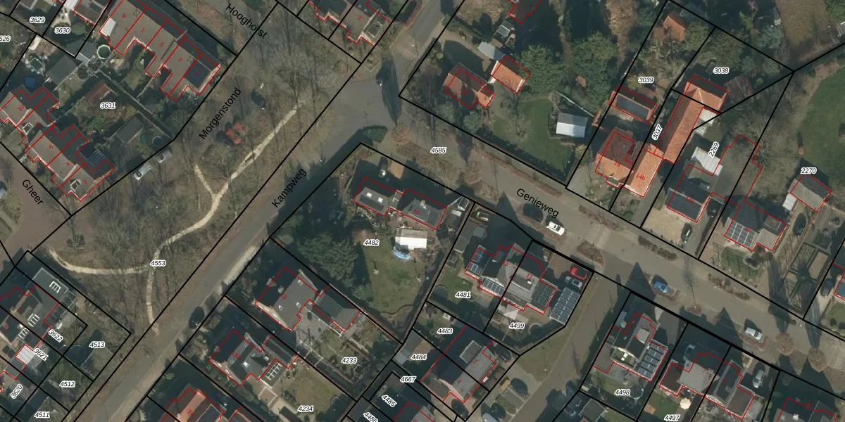 Genieweg 15 is gelegen op kadastraal perceel MIL00F4482. Deze kadastrale aanduiding is uniek en wordt gebruikt door het Kadaster om eigendomsrechten en andere zakelijke rechten vast te leggen. Het perceel maakt onderdeel uit van de kadastrale gemeente Mill.