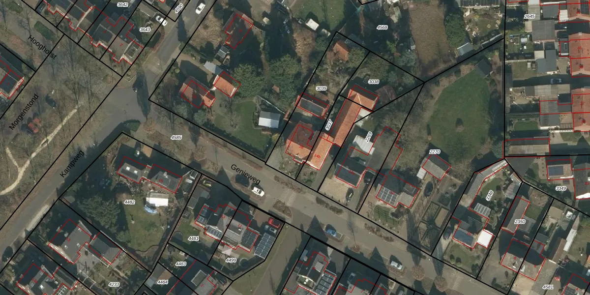 Genieweg 16 is gelegen op kadastraal perceel MIL00F3039. Deze kadastrale aanduiding is uniek en wordt gebruikt door het Kadaster om eigendomsrechten en andere zakelijke rechten vast te leggen. Het perceel maakt onderdeel uit van de kadastrale gemeente Mill.