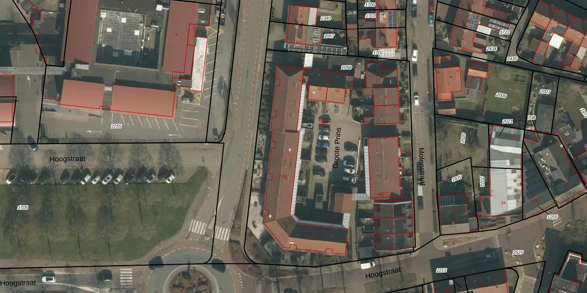 Groote Prins 10 is gelegen op kadastraal perceel MIL00G2058. Deze kadastrale aanduiding is uniek en wordt gebruikt door het Kadaster om eigendomsrechten en andere zakelijke rechten vast te leggen. Het perceel maakt onderdeel uit van de kadastrale gemeente Mill.