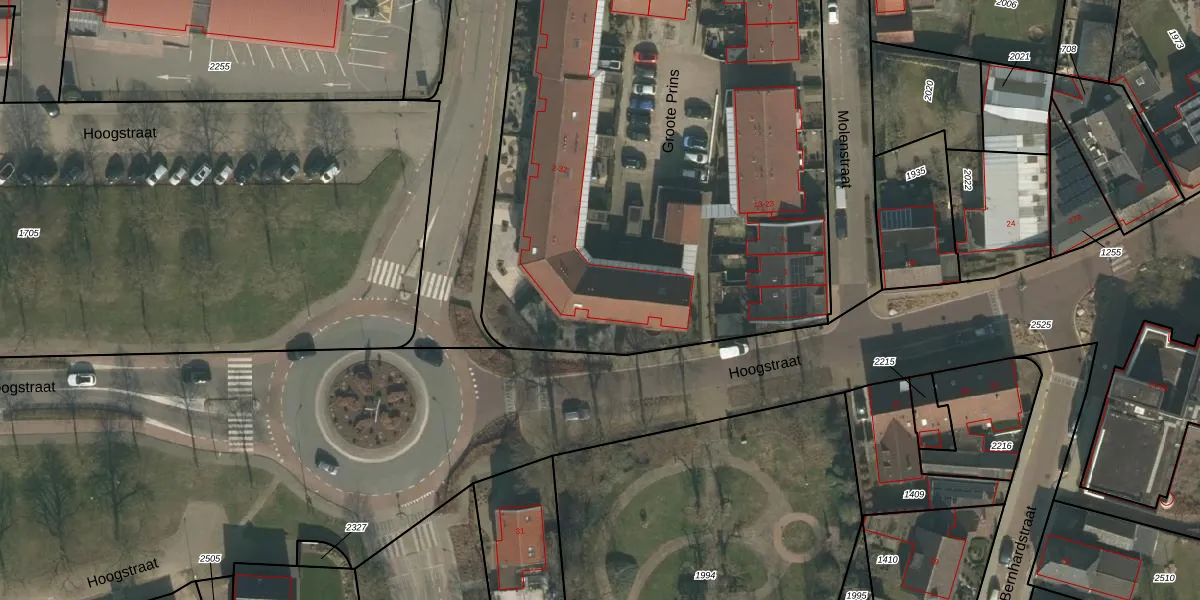 Het perceel waarop Groote Prins 22 staat heeft een oppervlakte van 3778 m². Dit is een zeer groot perceel. De perceeloppervlakte wordt geregistreerd door het Kadaster. Gedetailleerde informatie over de maten van dit perceel kunt u vinden in het rapport Kadastrale kaart met maatvoering van Groote Prins 22.