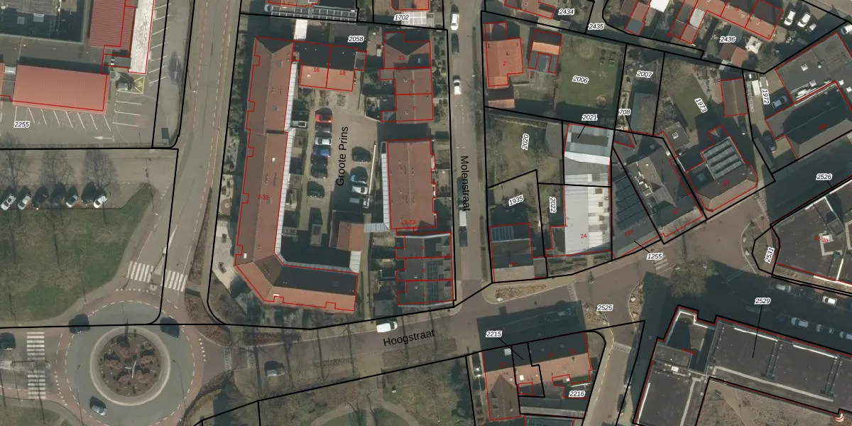 Groote Prins 23 is gelegen op kadastraal perceel MIL00G2058. Deze kadastrale aanduiding is uniek en wordt gebruikt door het Kadaster om eigendomsrechten en andere zakelijke rechten vast te leggen. Het perceel maakt onderdeel uit van de kadastrale gemeente Mill.