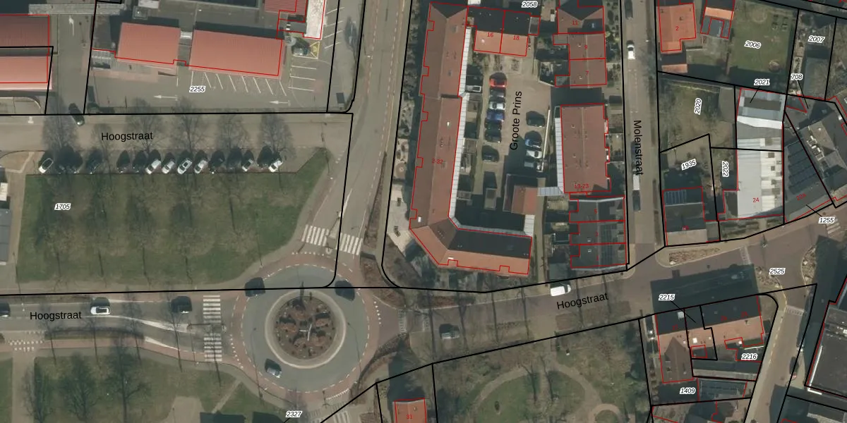 Het perceel waarop Groote Prins 24 staat heeft een oppervlakte van 3778 m². Dit is een zeer groot perceel. De perceeloppervlakte wordt geregistreerd door het Kadaster. Gedetailleerde informatie over de maten van dit perceel kunt u vinden in het rapport Kadastrale kaart met maatvoering van Groote Prins 24.