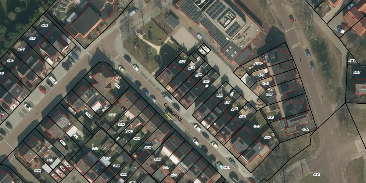 Gebruik de zoekbalk of klik op een perceel voor informatie over de adressen binnen dit perceel.