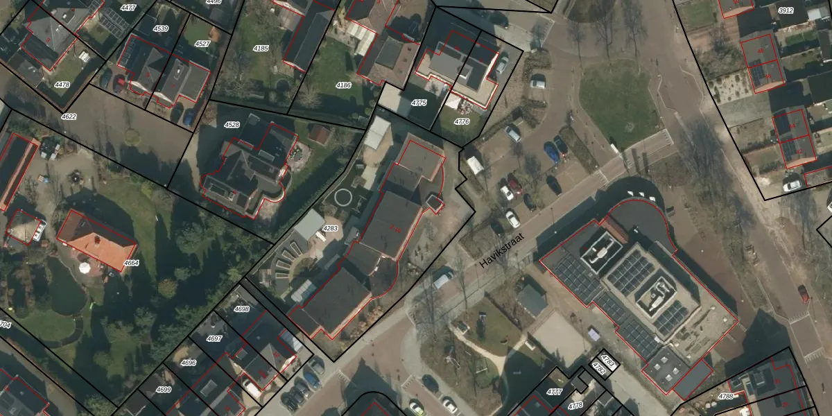 Het perceel waarop Havikstraat 2-a staat heeft een oppervlakte van 1696 m². Dit is een zeer groot perceel. De perceeloppervlakte wordt geregistreerd door het Kadaster. Gedetailleerde informatie over de maten van dit perceel kunt u vinden in het rapport Kadastrale kaart met maatvoering van Havikstraat 2-a.