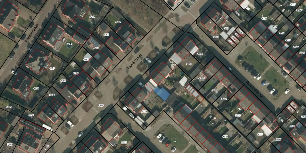 Het perceel waarop Havikstraat 23 staat heeft een oppervlakte van 2692 m². Dit is een zeer groot perceel. De perceeloppervlakte wordt geregistreerd door het Kadaster. Gedetailleerde informatie over de maten van dit perceel kunt u vinden in het rapport Kadastrale kaart met maatvoering van Havikstraat 23.
