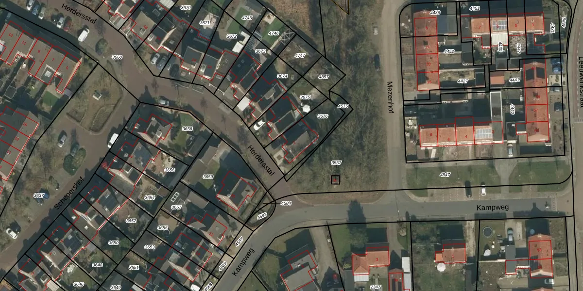 Gebruik de zoekbalk of klik op een perceel voor informatie over de adressen binnen dit perceel.