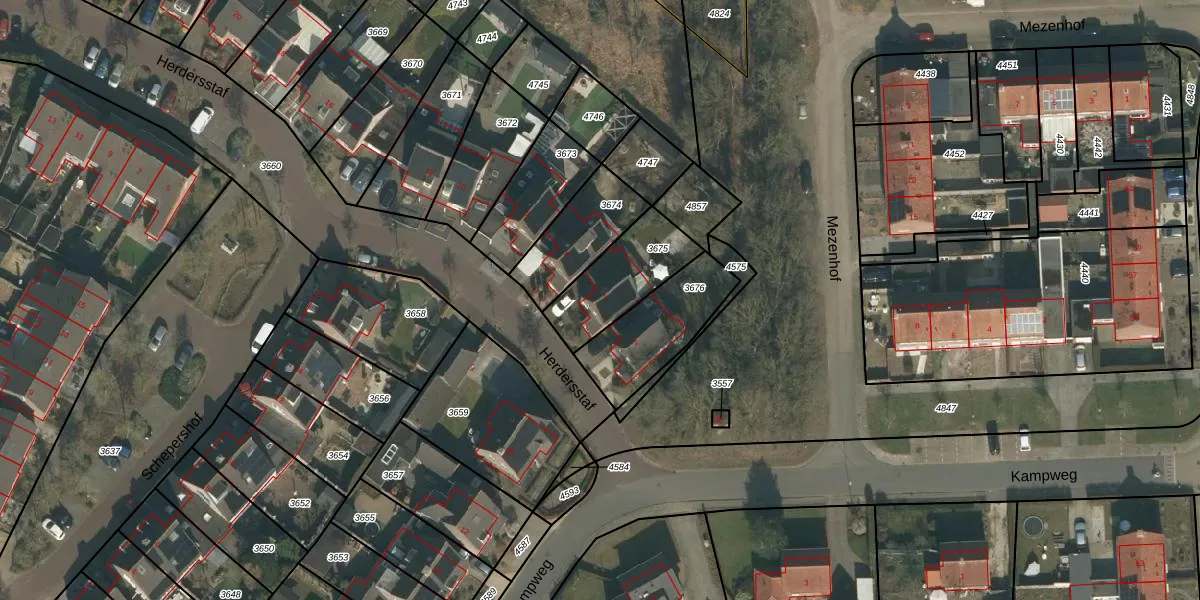 Herdersstaf 4 is gelegen op kadastraal perceel MIL00F3675. Deze kadastrale aanduiding is uniek en wordt gebruikt door het Kadaster om eigendomsrechten en andere zakelijke rechten vast te leggen. Het perceel maakt onderdeel uit van de kadastrale gemeente Mill.