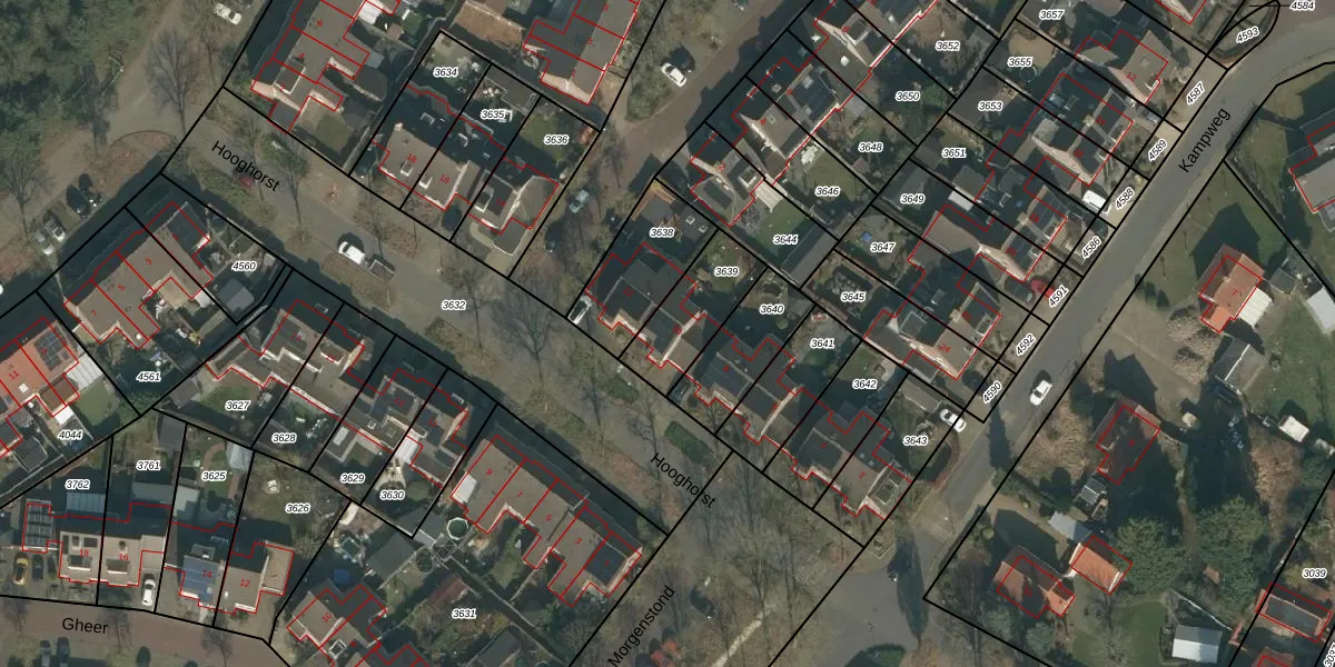 Gebruik de zoekbalk of klik op een perceel voor informatie over de adressen binnen dit perceel.
