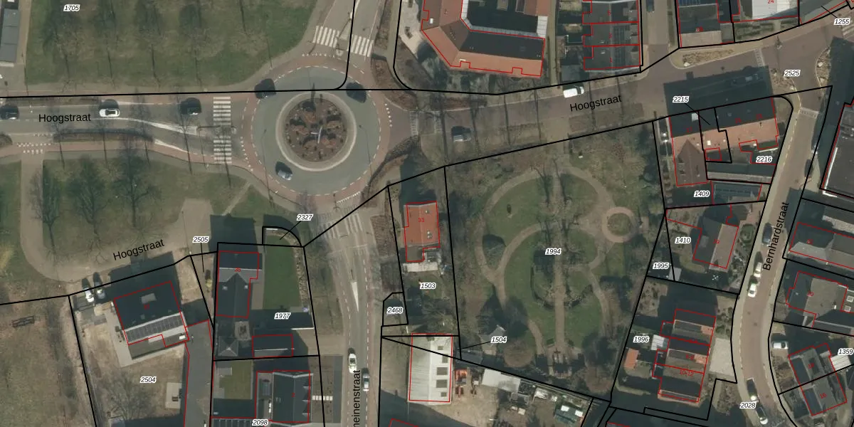 Hoogstraat 31 is gelegen op kadastraal perceel MIL00G1503. Deze kadastrale aanduiding is uniek en wordt gebruikt door het Kadaster om eigendomsrechten en andere zakelijke rechten vast te leggen. Het perceel maakt onderdeel uit van de kadastrale gemeente Mill.