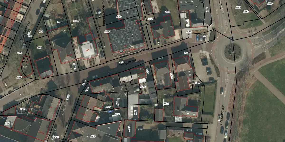 Hoogstraat 5 is gelegen op kadastraal perceel MIL00G2247. Deze kadastrale aanduiding is uniek en wordt gebruikt door het Kadaster om eigendomsrechten en andere zakelijke rechten vast te leggen. Het perceel maakt onderdeel uit van de kadastrale gemeente Mill.