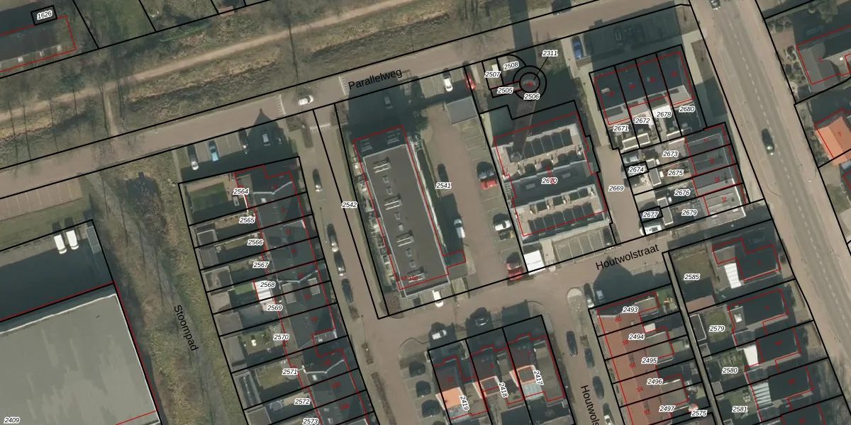 Houtwolstraat 100 is gelegen op kadastraal perceel MIL00D2541. Deze kadastrale aanduiding is uniek en wordt gebruikt door het Kadaster om eigendomsrechten en andere zakelijke rechten vast te leggen. Het perceel maakt onderdeel uit van de kadastrale gemeente Mill.