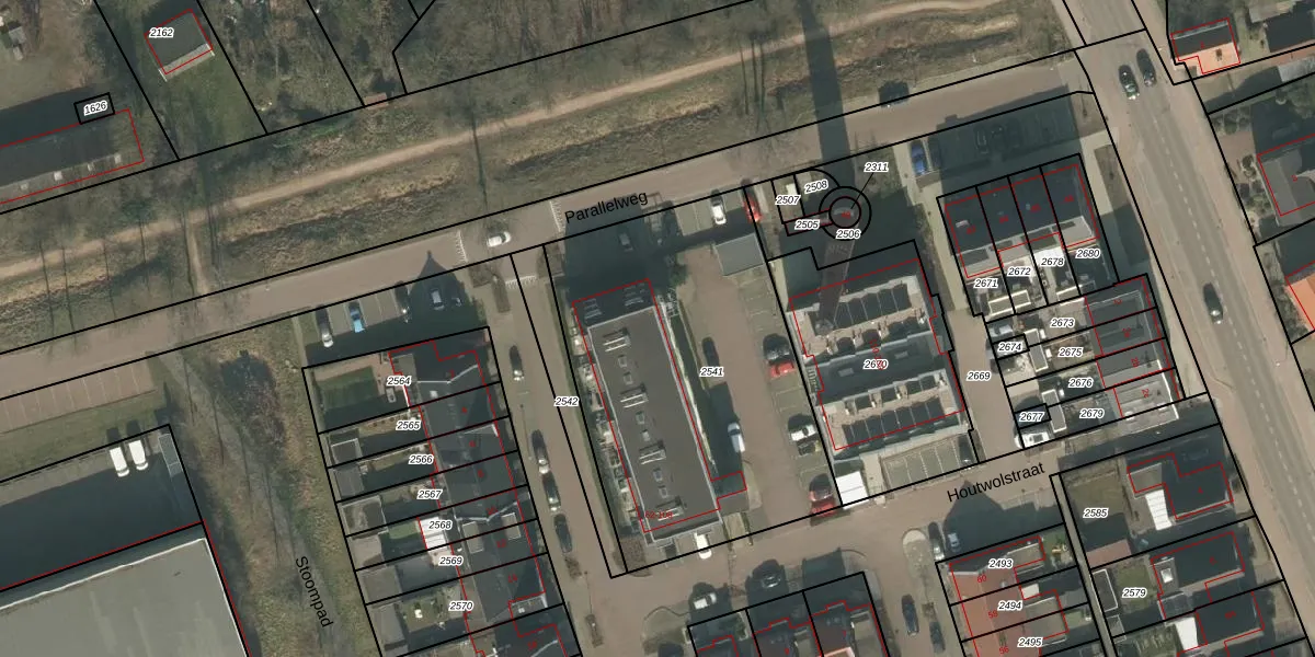 Houtwolstraat 106 is gelegen op kadastraal perceel MIL00D2541. Deze kadastrale aanduiding is uniek en wordt gebruikt door het Kadaster om eigendomsrechten en andere zakelijke rechten vast te leggen. Het perceel maakt onderdeel uit van de kadastrale gemeente Mill.