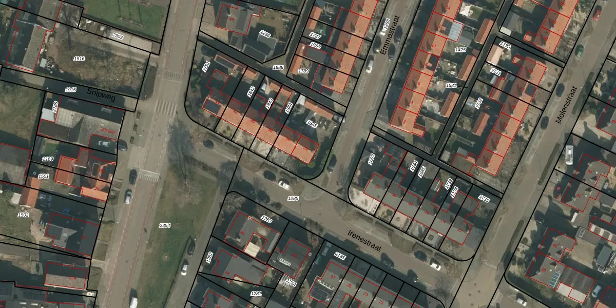 Irenestraat 34 is gelegen op kadastraal perceel MIL00G1845. Deze kadastrale aanduiding is uniek en wordt gebruikt door het Kadaster om eigendomsrechten en andere zakelijke rechten vast te leggen. Het perceel maakt onderdeel uit van de kadastrale gemeente Mill.
