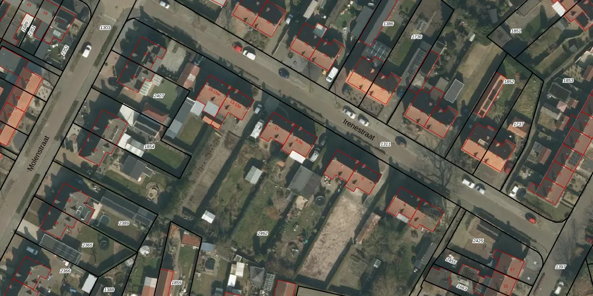 Irenestraat 9-a is gelegen op kadastraal perceel MIL00G2462. Deze kadastrale aanduiding is uniek en wordt gebruikt door het Kadaster om eigendomsrechten en andere zakelijke rechten vast te leggen. Het perceel maakt onderdeel uit van de kadastrale gemeente Mill.