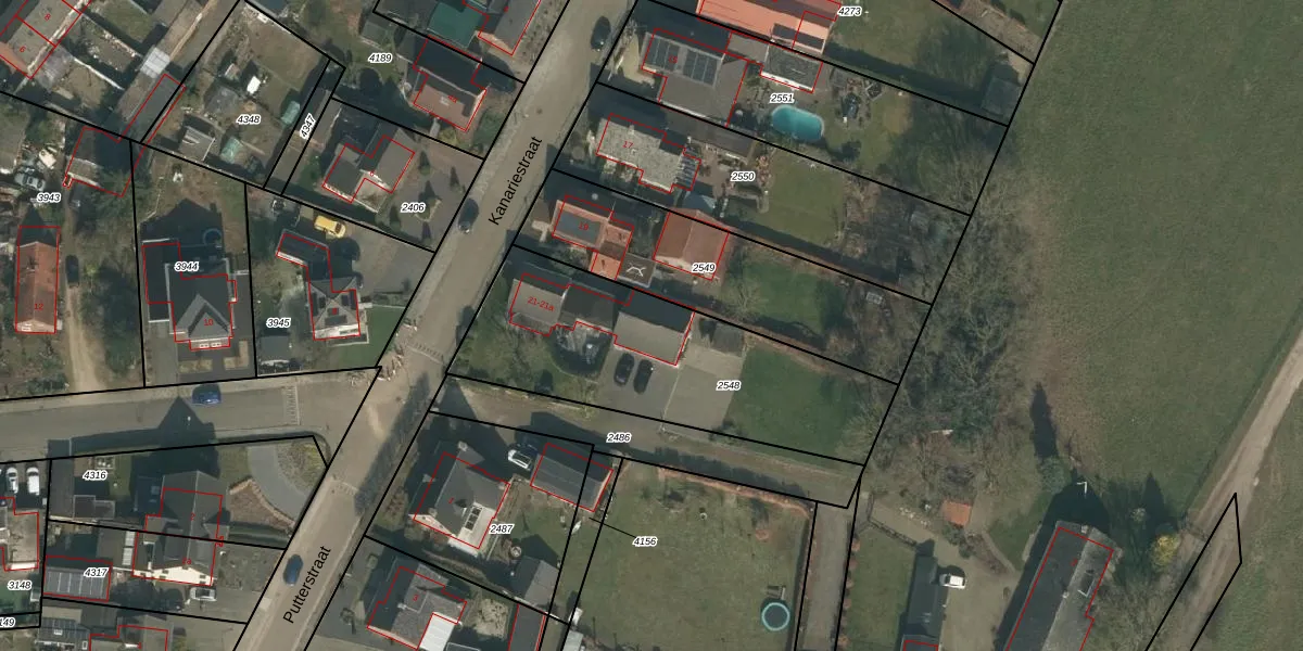 Kanariestraat 21-a is gelegen op kadastraal perceel MIL00F2548. Deze kadastrale aanduiding is uniek en wordt gebruikt door het Kadaster om eigendomsrechten en andere zakelijke rechten vast te leggen. Het perceel maakt onderdeel uit van de kadastrale gemeente Mill.