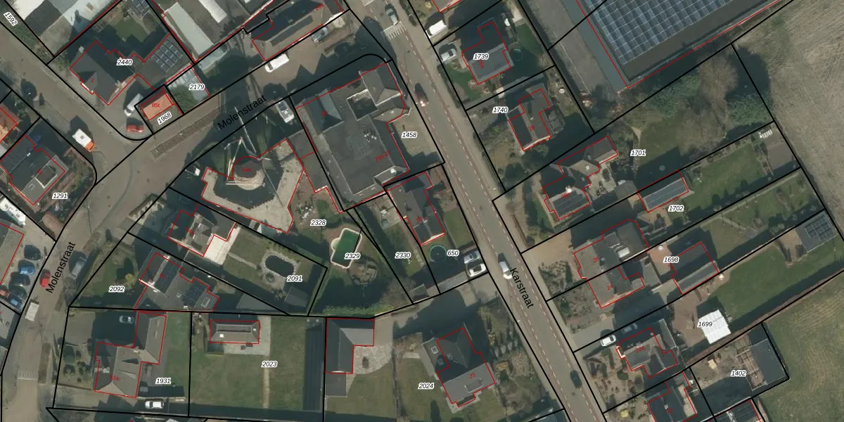 Karstraat 25 is gelegen op kadastraal perceel MIL00G650. Deze kadastrale aanduiding is uniek en wordt gebruikt door het Kadaster om eigendomsrechten en andere zakelijke rechten vast te leggen. Het perceel maakt onderdeel uit van de kadastrale gemeente Mill.