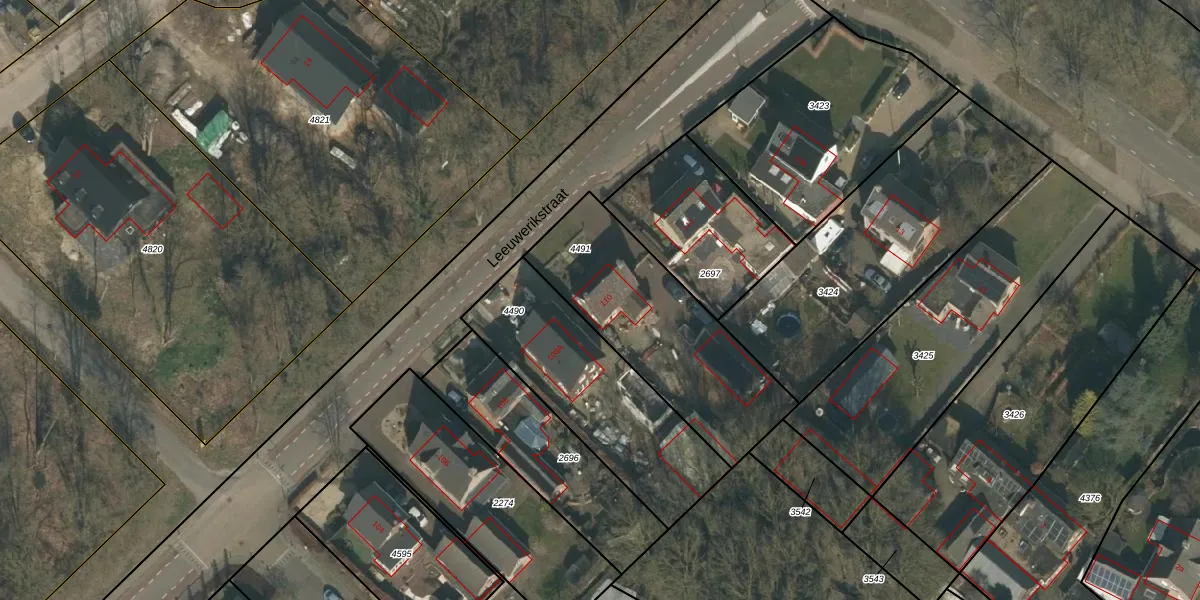 Gebruik de zoekbalk of klik op een perceel voor informatie over de adressen binnen dit perceel.