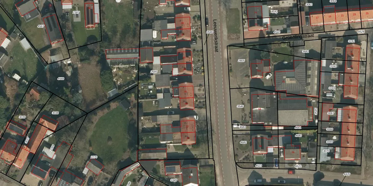 Het perceel waarop Leeuwerikstraat 41 staat heeft een oppervlakte van 3545 m². Dit is een zeer groot perceel. De perceeloppervlakte wordt geregistreerd door het Kadaster. Gedetailleerde informatie over de maten van dit perceel kunt u vinden in het rapport Kadastrale kaart met maatvoering van Leeuwerikstraat 41.