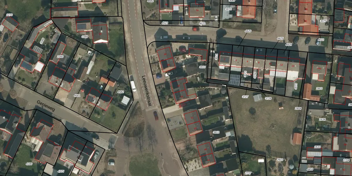 Het perceel waarop Leeuwerikstraat 56 staat heeft een oppervlakte van 3223 m². Dit is een zeer groot perceel. De perceeloppervlakte wordt geregistreerd door het Kadaster. Gedetailleerde informatie over de maten van dit perceel kunt u vinden in het rapport Kadastrale kaart met maatvoering van Leeuwerikstraat 56.