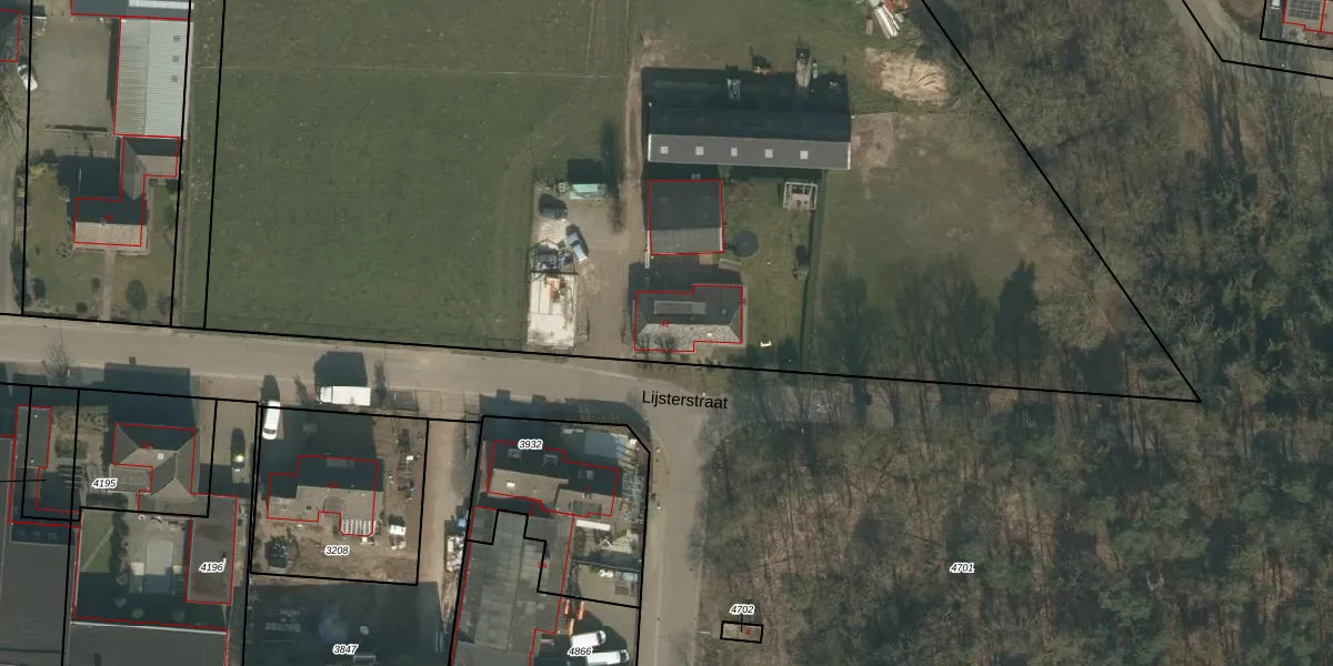 Het perceel waarop Lijsterstraat 42 staat heeft een oppervlakte van 1,2 ha. Dit is een zeer groot perceel. De perceeloppervlakte wordt geregistreerd door het Kadaster. Gedetailleerde informatie over de maten van dit perceel kunt u vinden in het rapport Kadastrale kaart met maatvoering van Lijsterstraat 42.