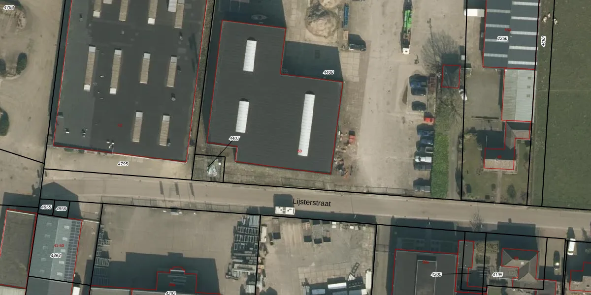Het perceel waarop Lijsterstraat 50 staat heeft een oppervlakte van 7848 m². Dit is een zeer groot perceel. De perceeloppervlakte wordt geregistreerd door het Kadaster. Gedetailleerde informatie over de maten van dit perceel kunt u vinden in het rapport Kadastrale kaart met maatvoering van Lijsterstraat 50.