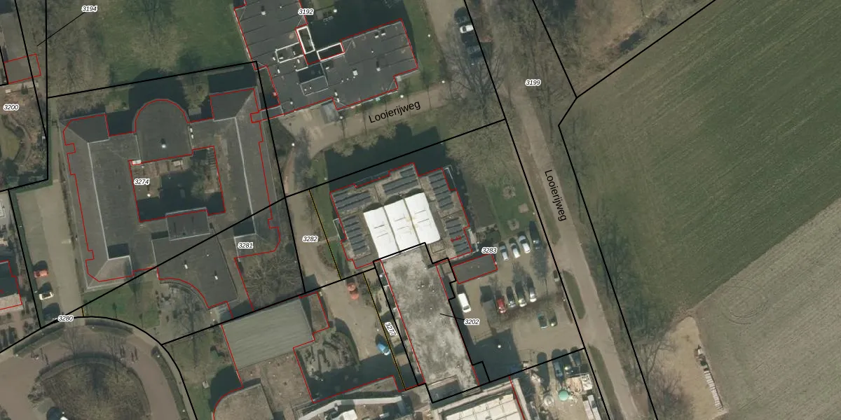 Het perceel waarop Looierijweg 25 staat heeft een oppervlakte van 2048 m². Dit is een zeer groot perceel. De perceeloppervlakte wordt geregistreerd door het Kadaster. Gedetailleerde informatie over de maten van dit perceel kunt u vinden in het rapport Kadastrale kaart met maatvoering van Looierijweg 25.