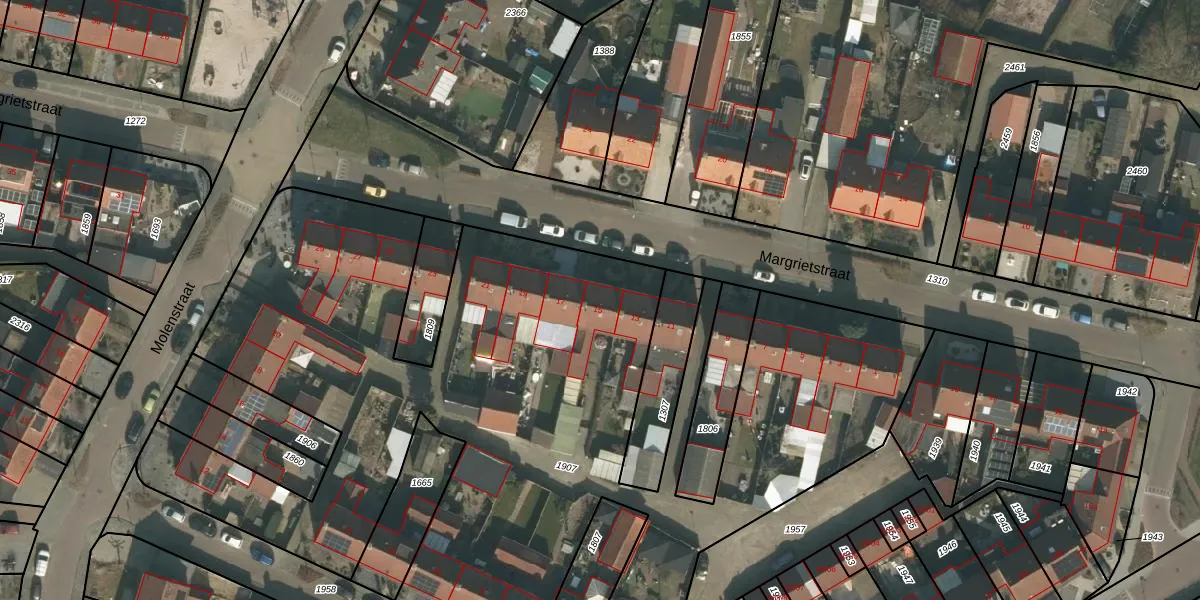 Margrietstraat 15 is gelegen op kadastraal perceel MIL00G1907. Deze kadastrale aanduiding is uniek en wordt gebruikt door het Kadaster om eigendomsrechten en andere zakelijke rechten vast te leggen. Het perceel maakt onderdeel uit van de kadastrale gemeente Mill.