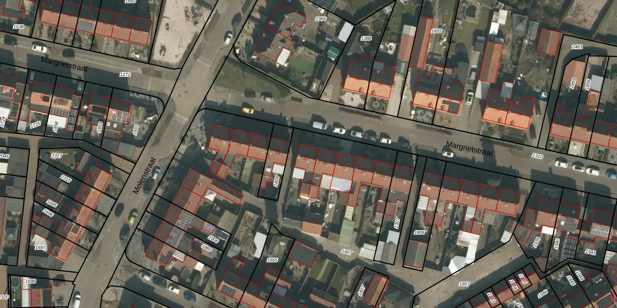 Margrietstraat 21 is gelegen op kadastraal perceel MIL00G1907. Deze kadastrale aanduiding is uniek en wordt gebruikt door het Kadaster om eigendomsrechten en andere zakelijke rechten vast te leggen. Het perceel maakt onderdeel uit van de kadastrale gemeente Mill.