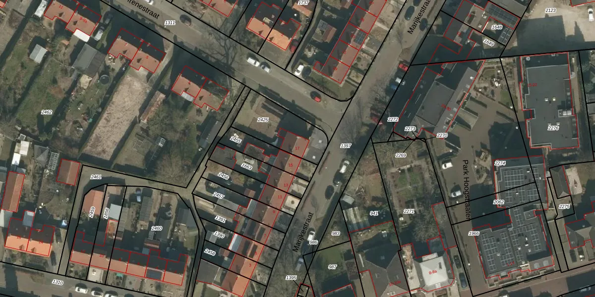 Marijkestraat 17 is gelegen op kadastraal perceel MIL00G2425. Deze kadastrale aanduiding is uniek en wordt gebruikt door het Kadaster om eigendomsrechten en andere zakelijke rechten vast te leggen. Het perceel maakt onderdeel uit van de kadastrale gemeente Mill.