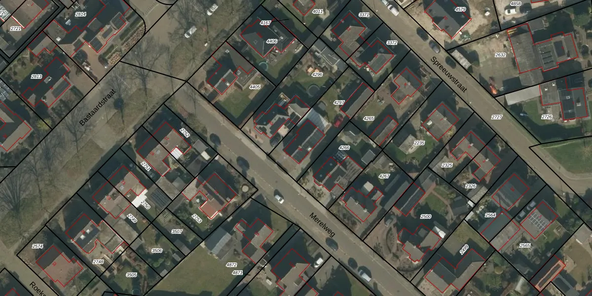 Het perceel waarop Merelweg 14 staat heeft een oppervlakte van 527 m². Dit is een groot perceel. De perceeloppervlakte wordt geregistreerd door het Kadaster. Gedetailleerde informatie over de maten van dit perceel kunt u vinden in het rapport Kadastrale kaart met maatvoering van Merelweg 14.
