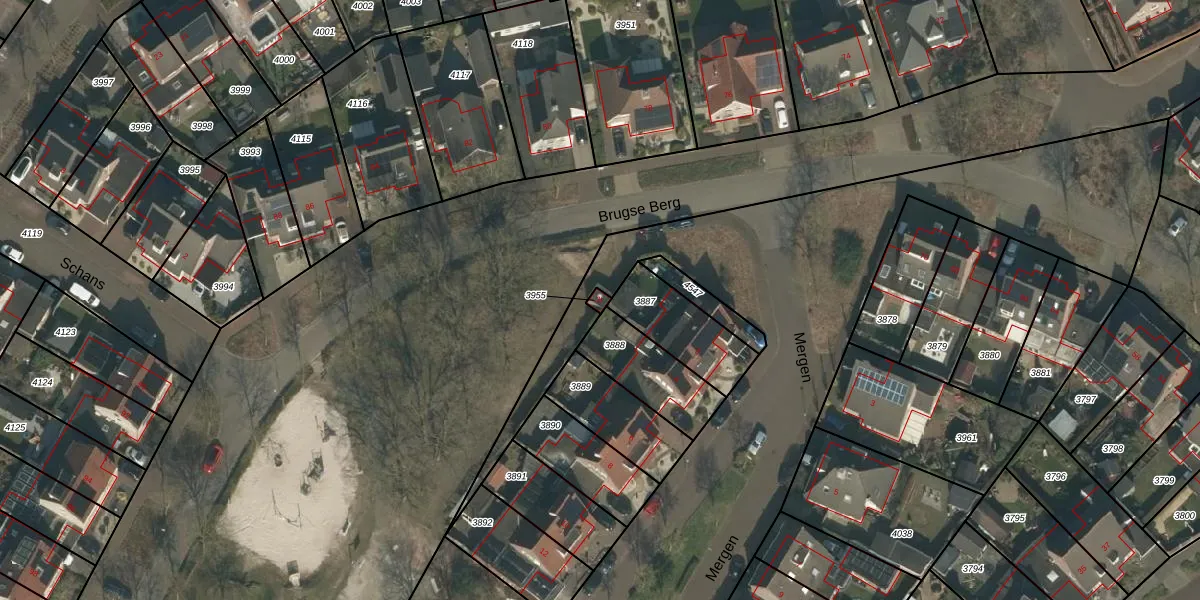 Mergen 2-t is gelegen op kadastraal perceel MIL00F3955. Deze kadastrale aanduiding is uniek en wordt gebruikt door het Kadaster om eigendomsrechten en andere zakelijke rechten vast te leggen. Het perceel maakt onderdeel uit van de kadastrale gemeente Mill.