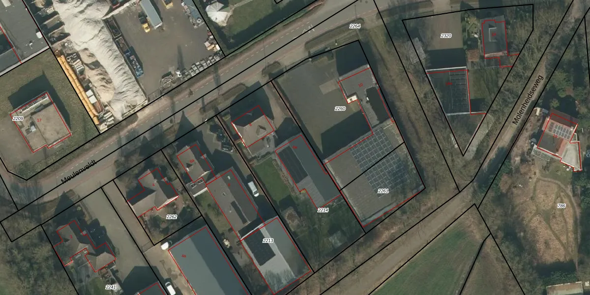 Meulenveldt 8-a is gelegen op kadastraal perceel MIL00D2214. Deze kadastrale aanduiding is uniek en wordt gebruikt door het Kadaster om eigendomsrechten en andere zakelijke rechten vast te leggen. Het perceel maakt onderdeel uit van de kadastrale gemeente Mill.